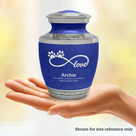 Small Infinity Love Paw Prints Pet Cremation Urn - Royal Blue