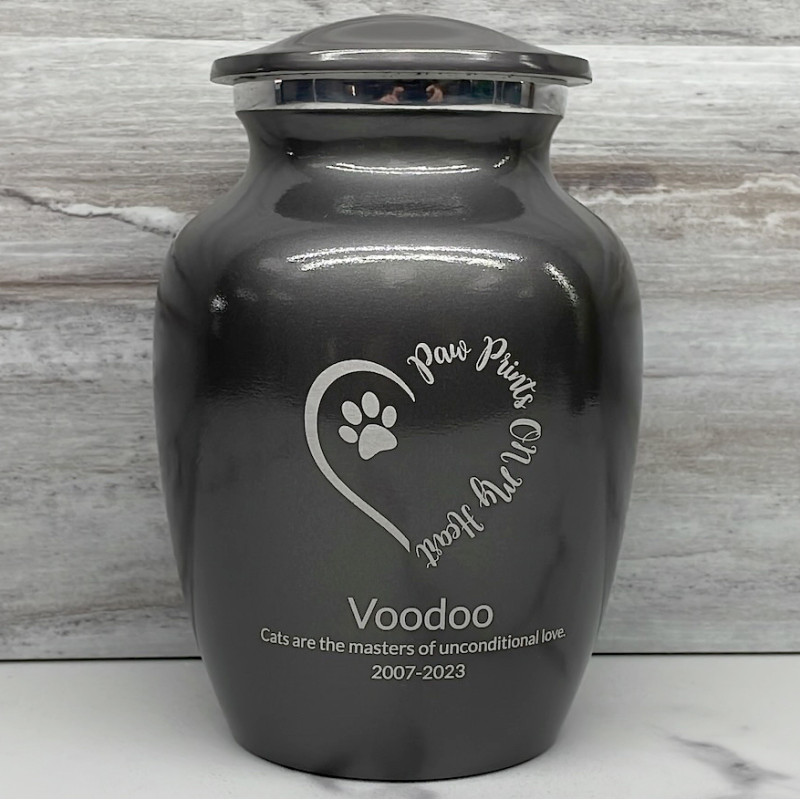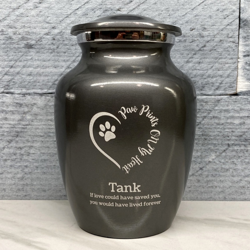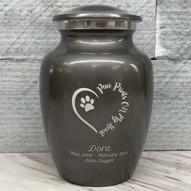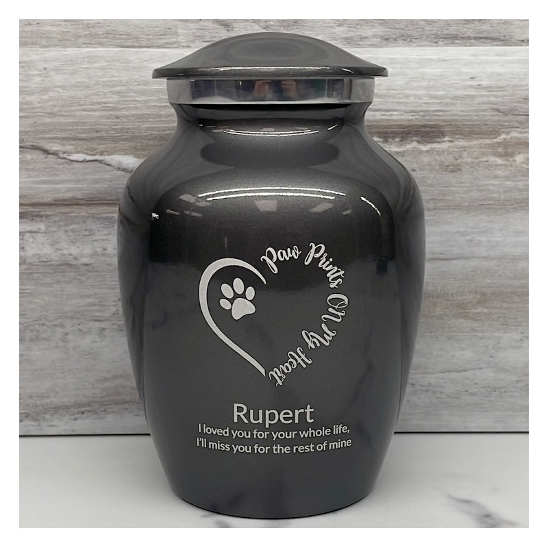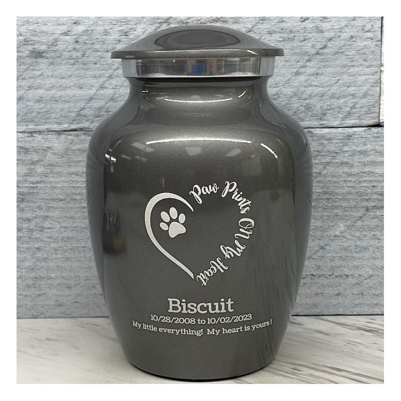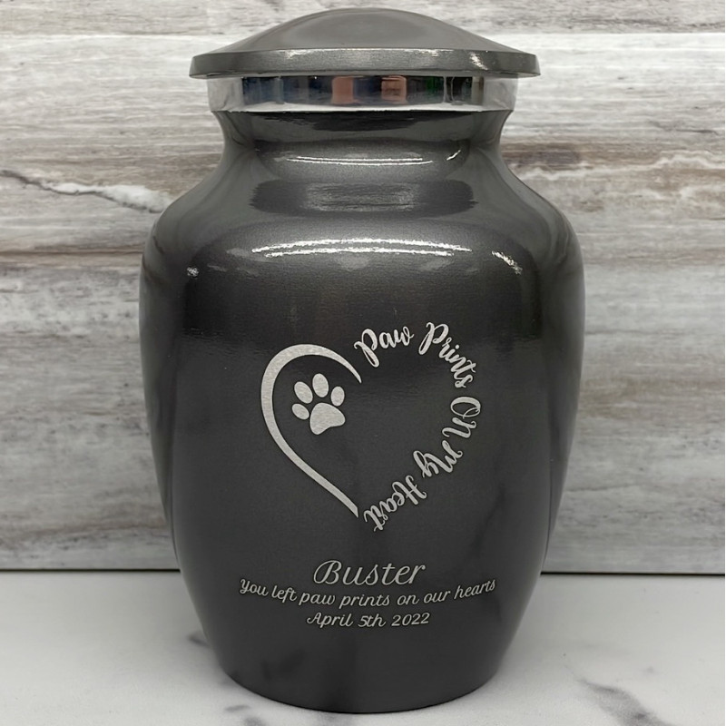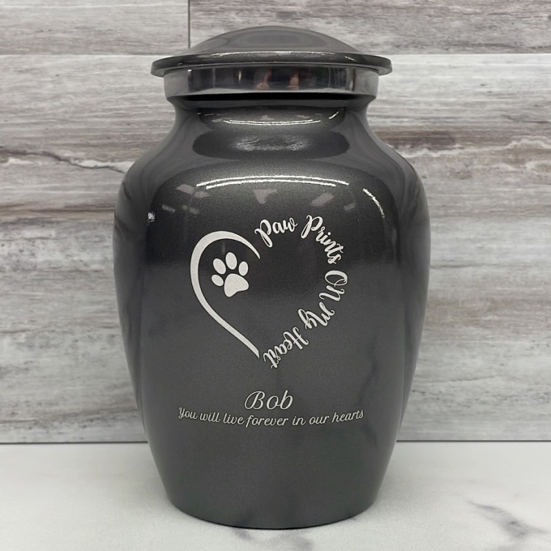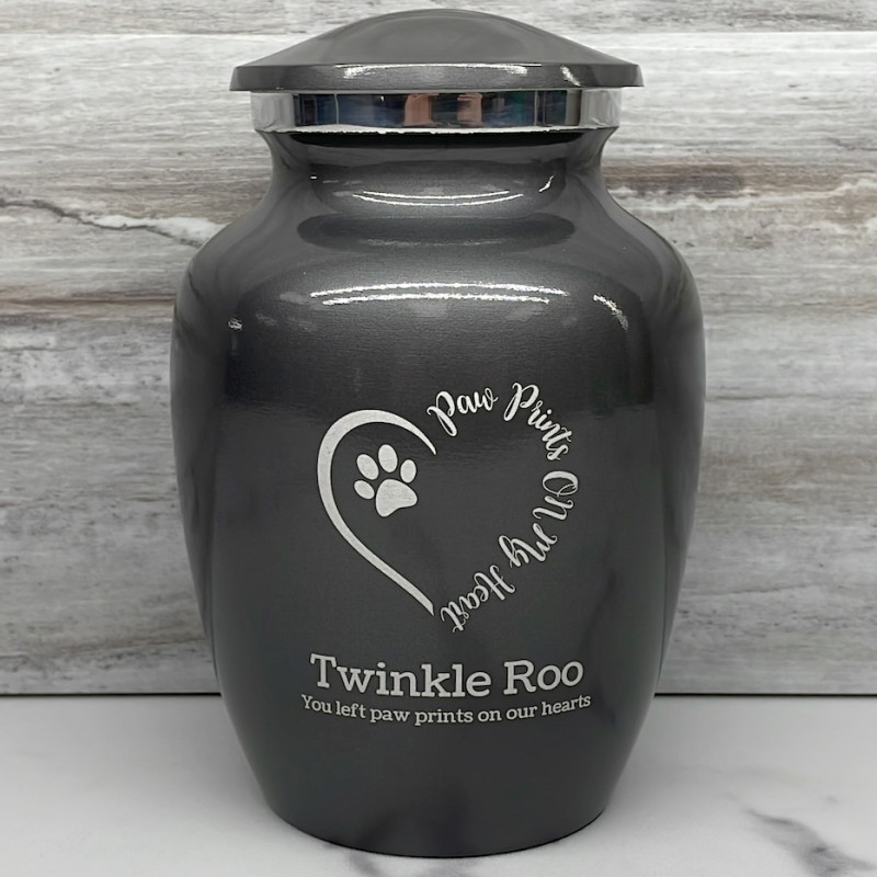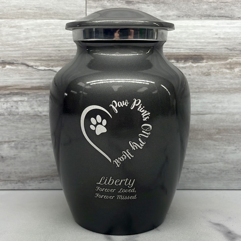 Small Paw Prints On My Heart Pet Cremation Urn - Gunmetal Gray
