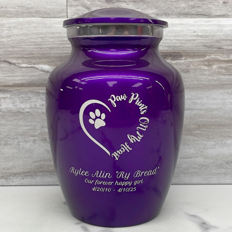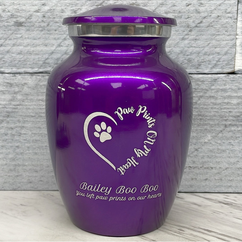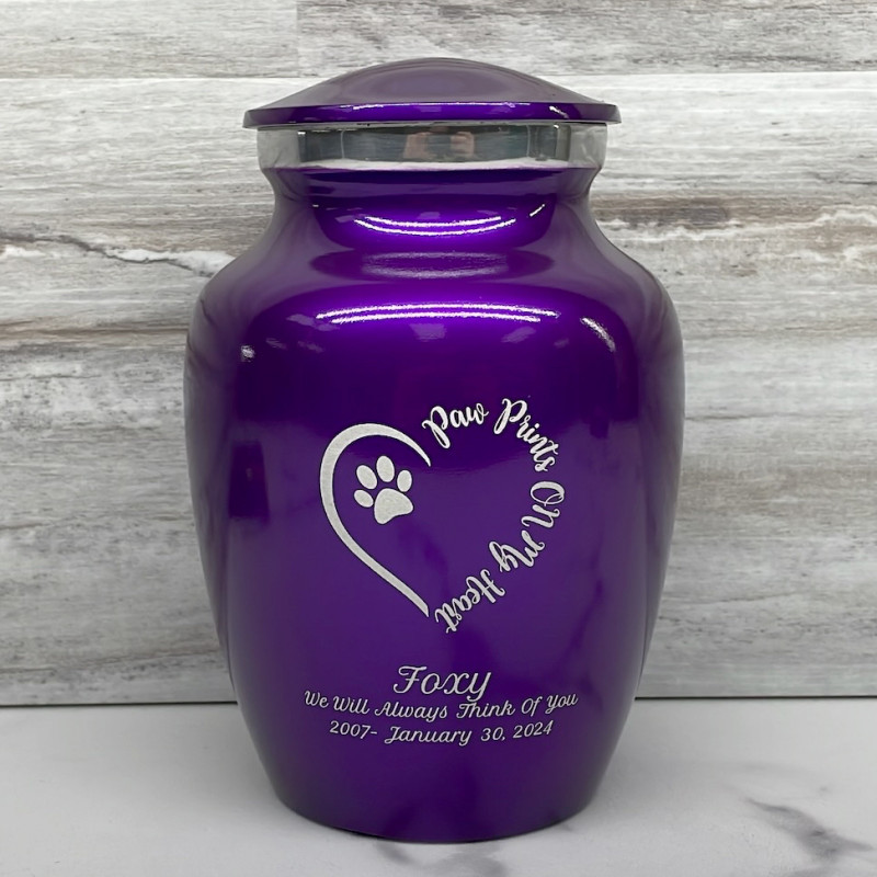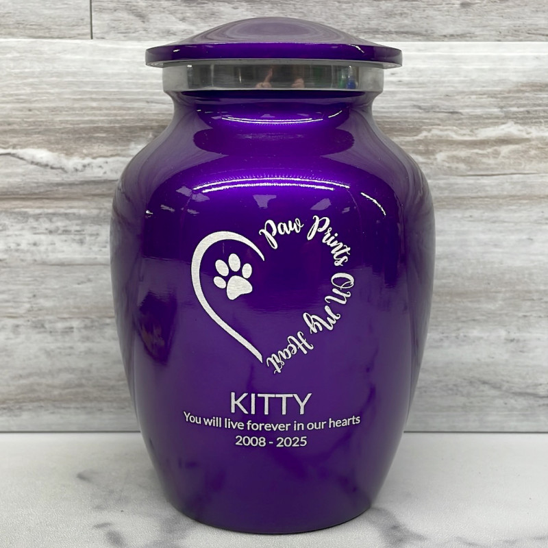 Small Paw Prints On My Heart Pet Cremation Urn - Purple Luster