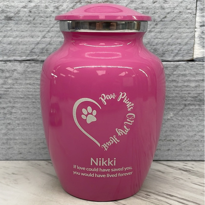 Small Paw Prints On My Heart Pet Cremation Urn - Rose Pink
