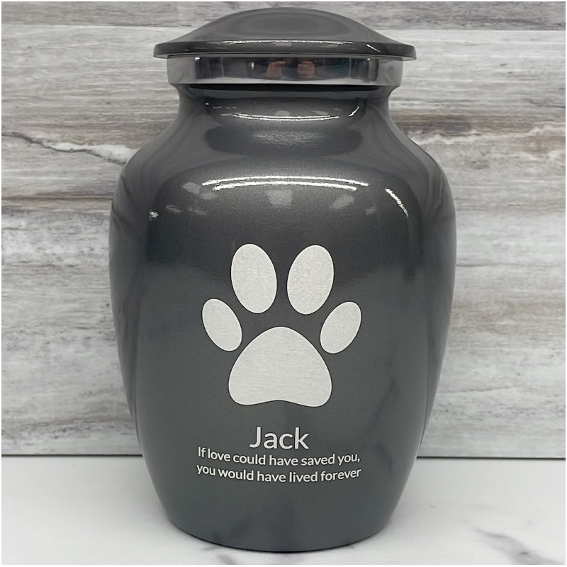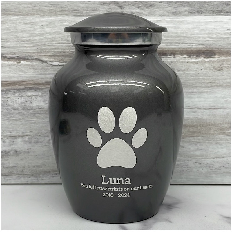 Small Pawprint Pet Cremation Urn - Gunmetal Gray