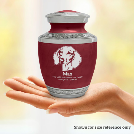 Small Shorthaired Daschund Pet Cremation Urn - Rose Red
