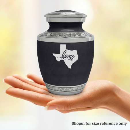 Select Texas Home Sharing Urn - Ebony Black to create a personal memorial that is a step larger than a keepsake urn but more petite than a full size urn. Bold, attractive colors offer sharp contrast with the engraved text and detailed artwork.