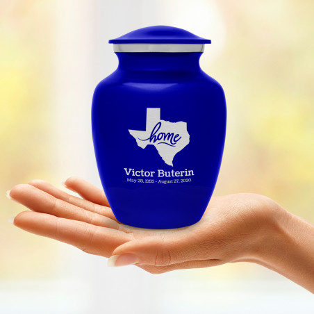Select a Texas Home Sharing Urn to create a personal memorial that is a step larger than a keepsake urn but more petite than a full size urn. Bold, attractive colors offer sharp contrast with the engraved text and detailed artwork.