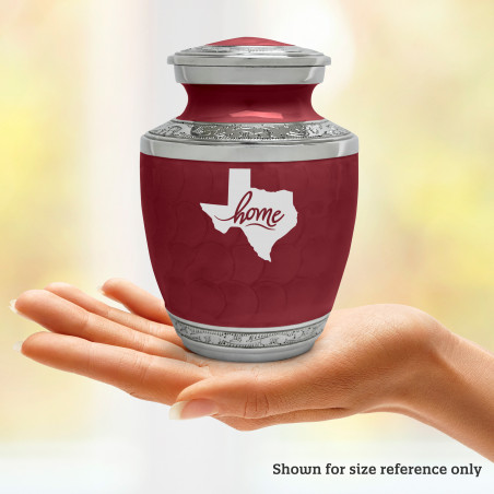 Select Texas Home Sharing Urn - Rose Red to create a personal memorial that is a step larger than a keepsake urn but more petite than a full size urn. Bold, attractive colors offer sharp contrast with the engraved text and detailed artwork.