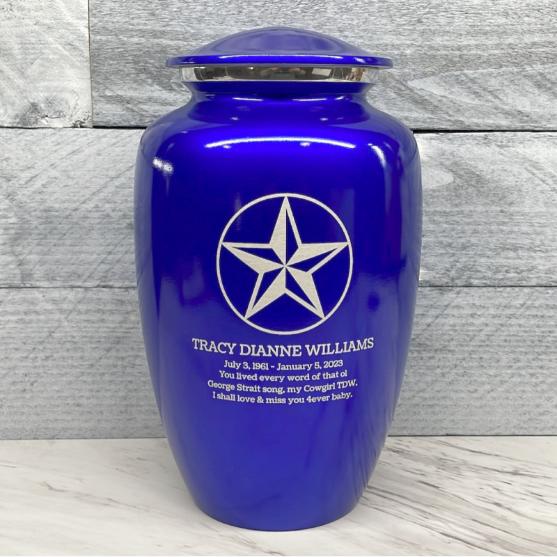 Texas Star Cremation Urn - Midnight Blue - Size Individual