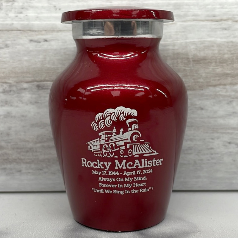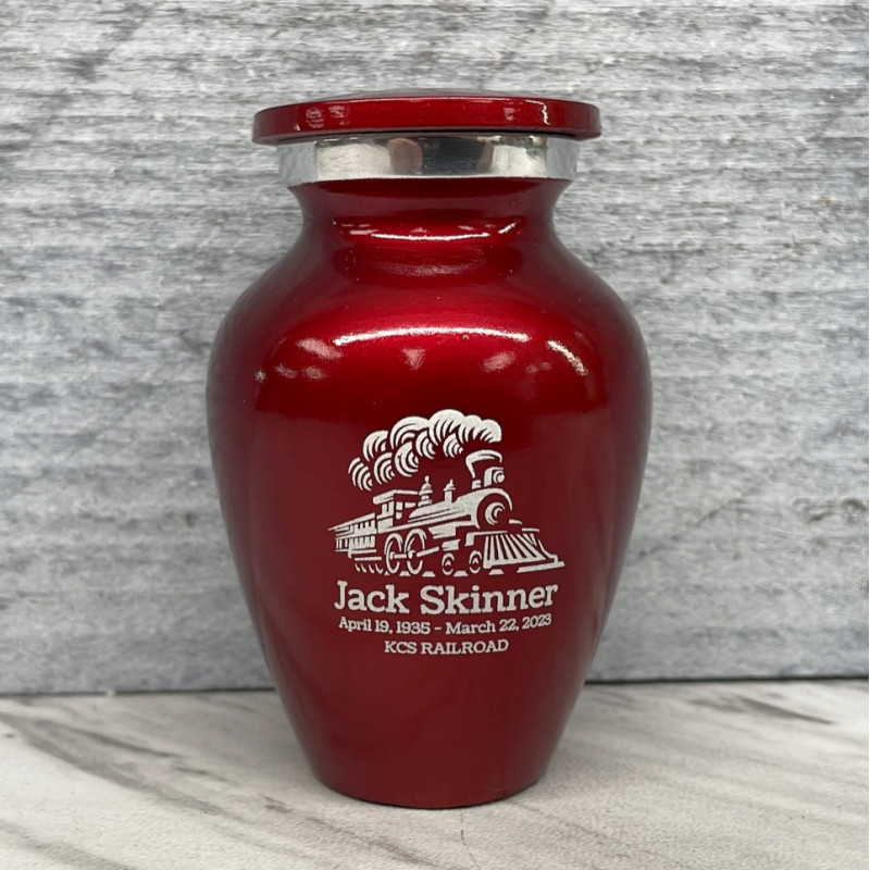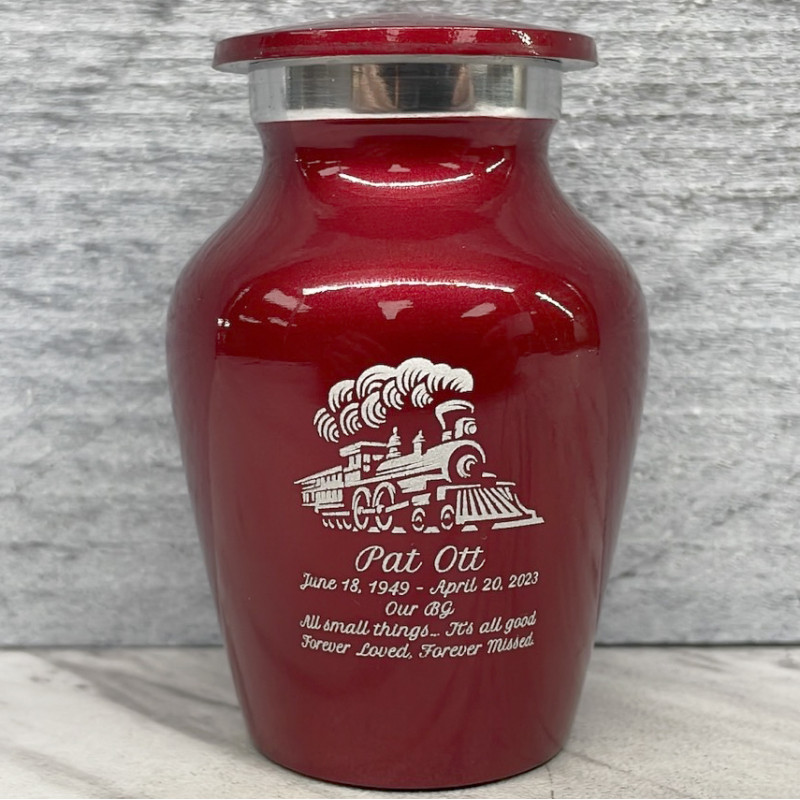 Train Keepsake Urn - Midnight Blue Train Keepsake Urn - Gunmetal Gray Train Keepsake Urn - Purple Luster Train Keepsake Urn - Shamrock GreenSizes