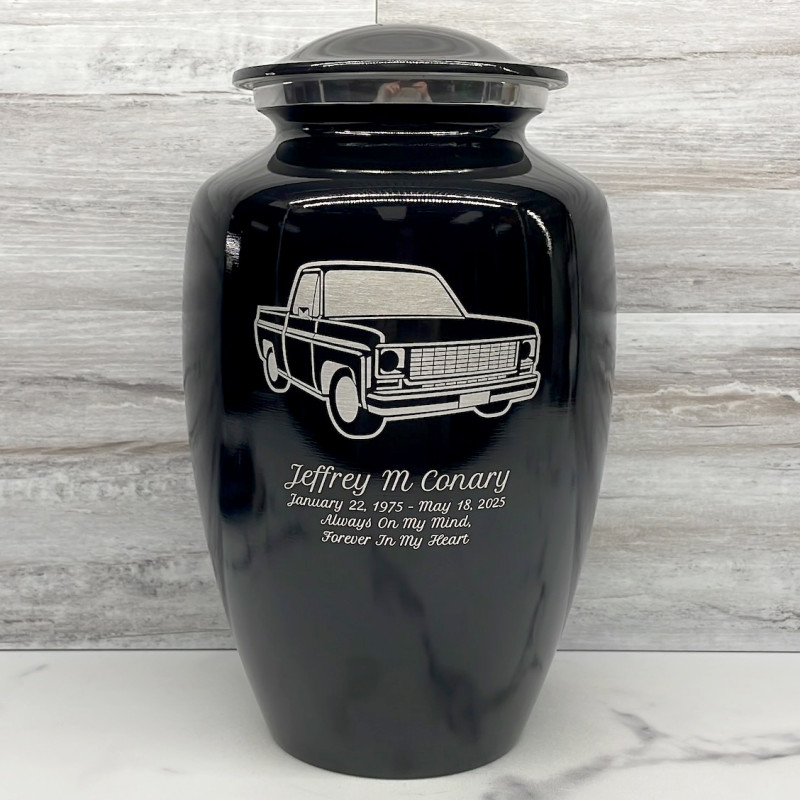 Truck II Cremation Urn - Midnight Blue Truck II Cremation Urn - Gunmetal Gray Truck II Cremation Urn - Purple Luster Truck II Cremation Urn - Shamrock Green Truck II Cremation Urn - Ruby RedTruck II Cremation Urn - Jet Black