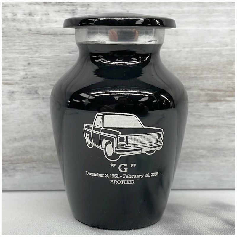 Truck II Keepsake Urn - Midnight Blue Truck II Keepsake Urn - Gunmetal Gray Truck II Keepsake Urn - Purple Luster Truck II Keepsake Urn - Shamrock Green Truck II Keepsake Urn - Ruby RedSizes