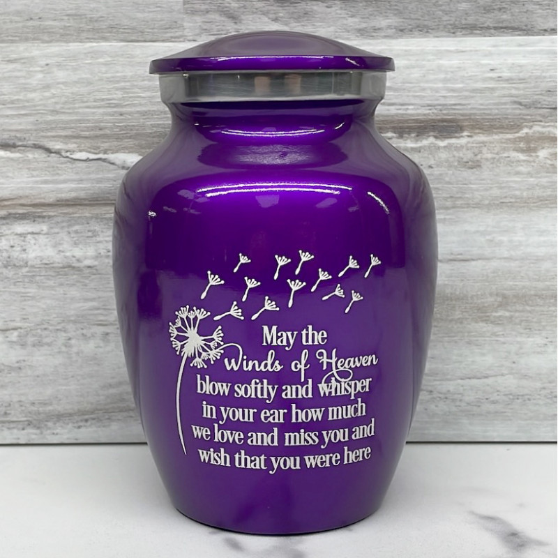 Select a Winds of Heaven Sharing Urn to create a personal memorial that is a step larger than a keepsake urn but more petite than a full size urn. Bold, attractive colors offer sharp contrast with the engraved text and detailed artwork.