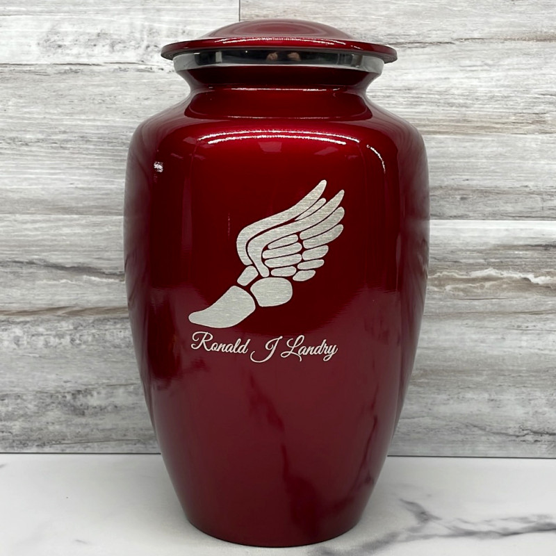 Winged Foot Running Cremation Urn - Midnight Blue Winged Foot Running Cremation Urn - Gunmetal Gray Winged Foot Running Cremation Urn - Purple LusterSizes