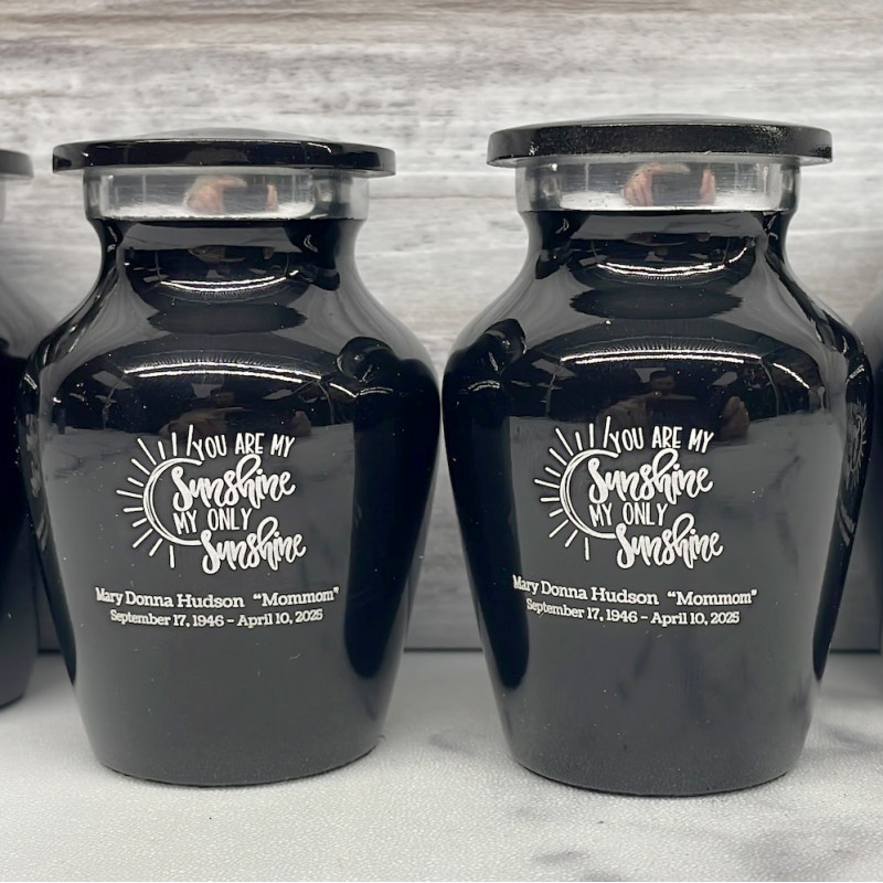 The ideal solution when everyone wants to be able to have a memorial, this urn is about 3" tall and holds a small amount of ashes.