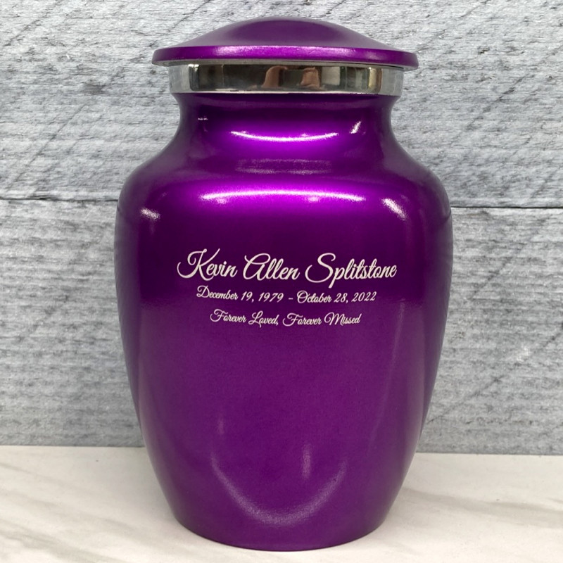 Select an engraved sharing urn to create a personal memorial that is a step larger than a keepsake urn but more petite than a full size urn. Bold, attractive colors offer sharp contrast with the engraved text and detailed artwork.
